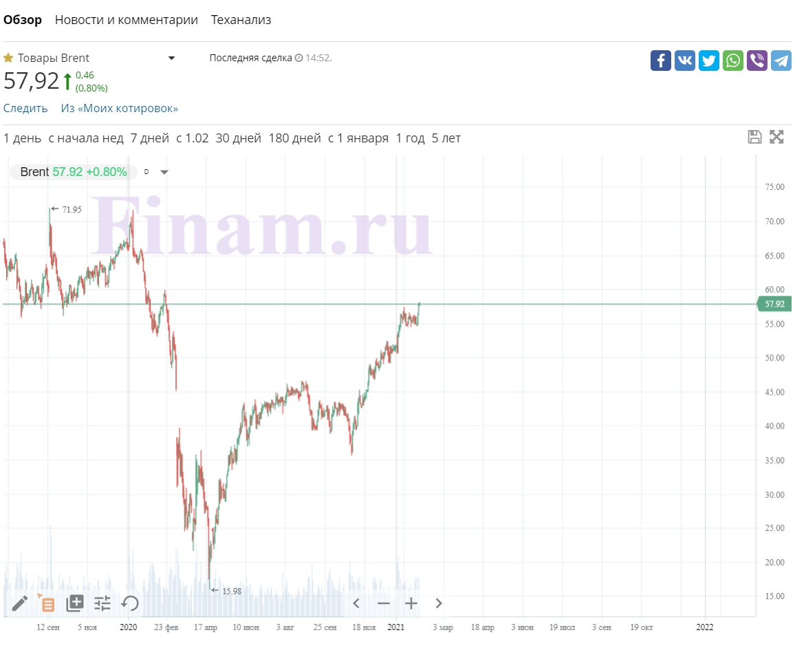 Цена нефти марки Brent превысила $62 за баррель впервые за годShuran писал(а) 03 фев 2021, 14:50почти годовой максимум